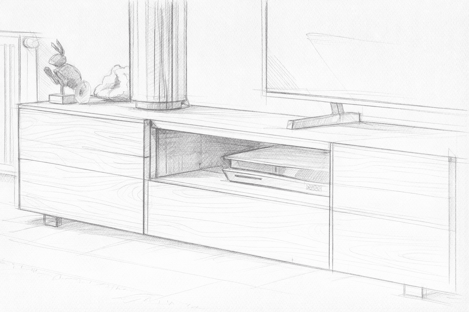 In our second phase we delivered multiple design idea sketches, the one on the right being one such sketch. The client had some small notes and picked one of the sketches to move forward with.
